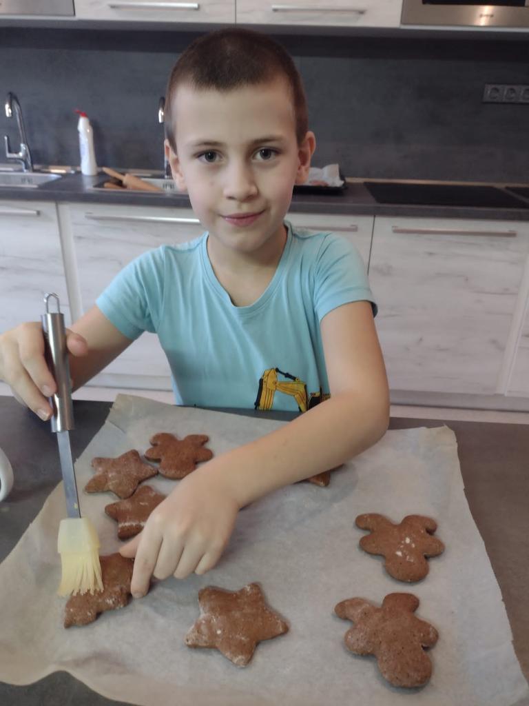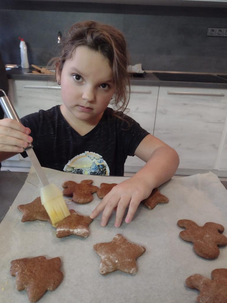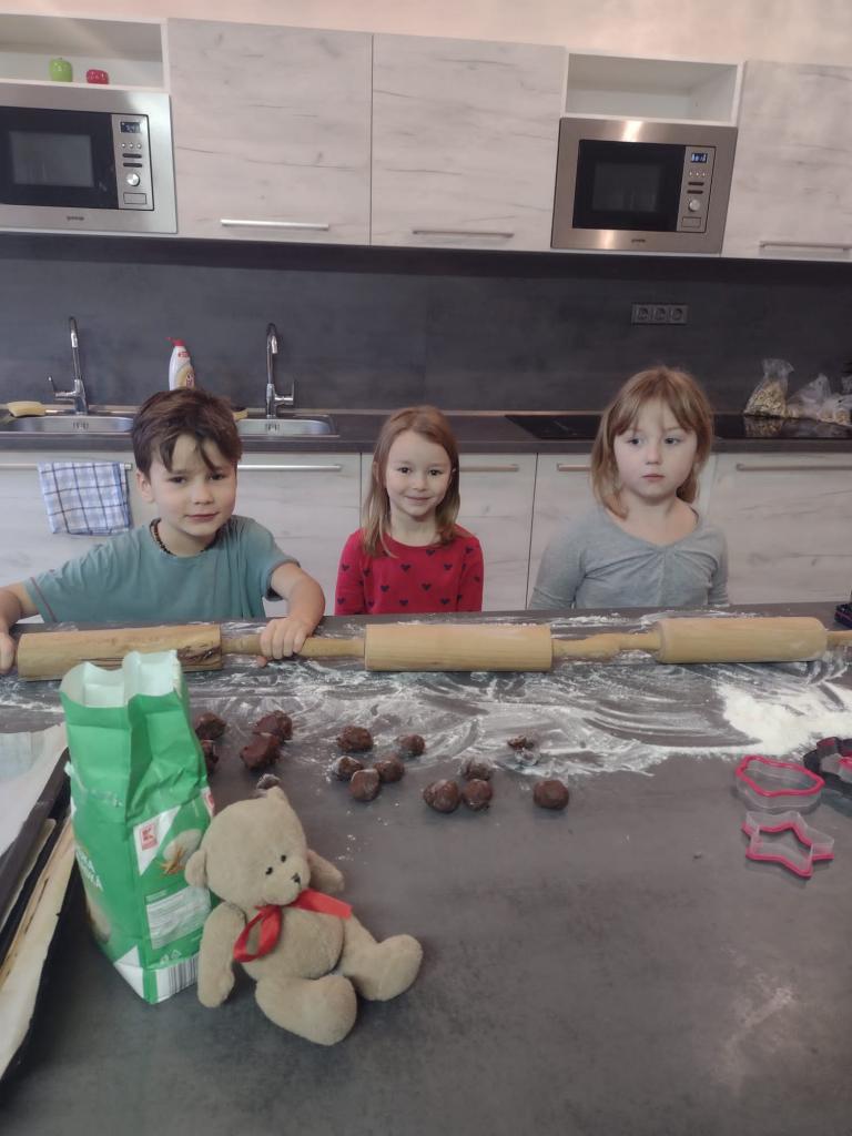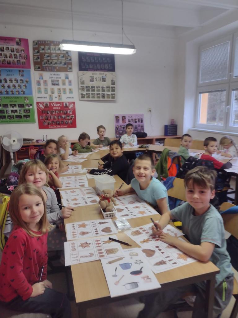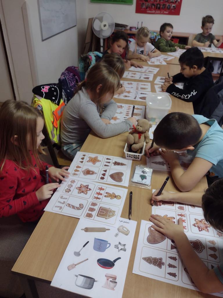 Dnes jsme navštívili ZŠ. V kuchyňce jsme si připravili těsto na perníčky, každý si svůj perníček nejdříve vyválel a poté vykrojil. Po upečení si našel každý svůj perníček a potřel ho vajíčkem, aby se krásně leskl. Volný čas jsme vyplnili pracovními listy a vánočním bingem.