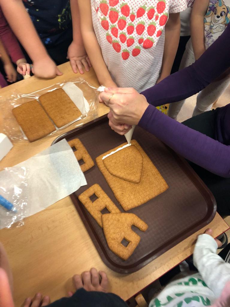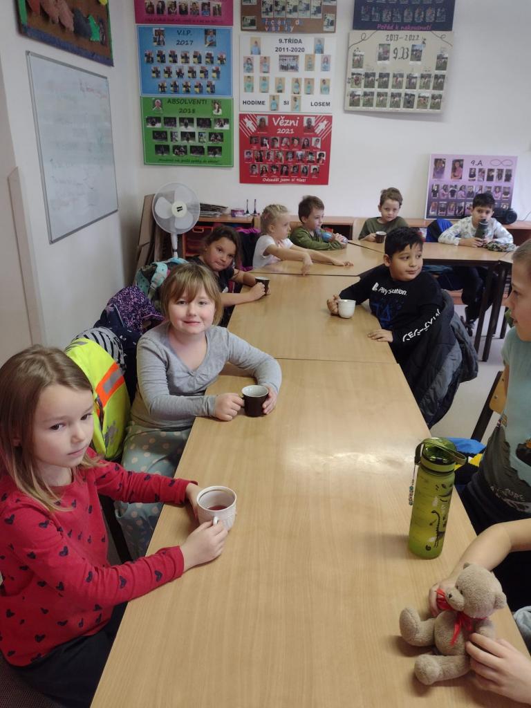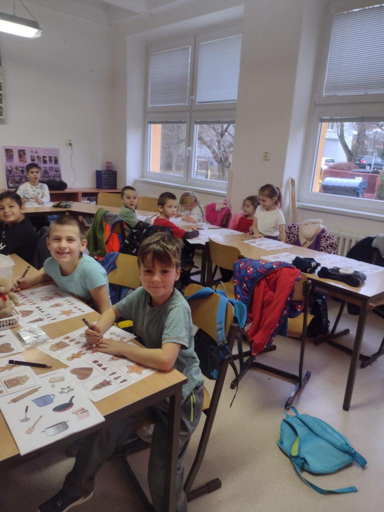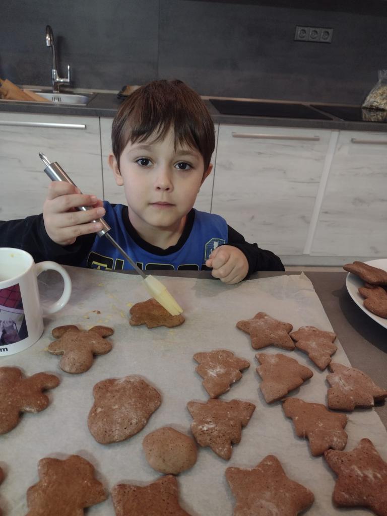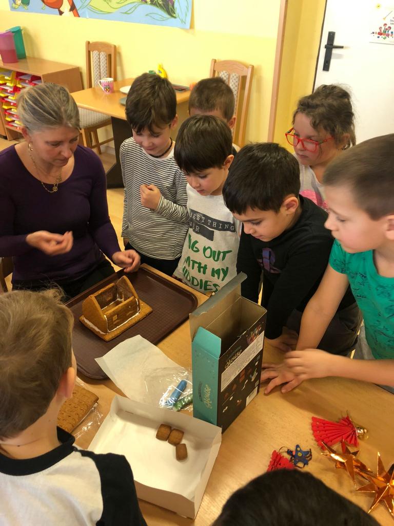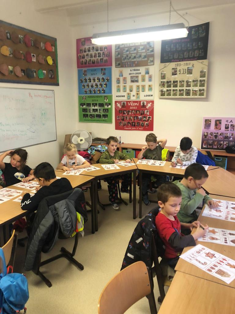 Dnes jsme navštívili ZŠ. V kuchyňce jsme si připravili těsto na perníčky, každý si svůj perníček nejdříve vyválel a poté vykrojil. Po upečení si našel každý svůj perníček a potřel ho vajíčkem, aby se krásně leskl. Volný čas jsme vyplnili pracovními listy a vánočním bingem.
