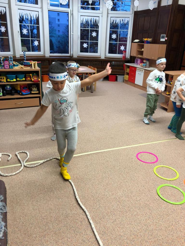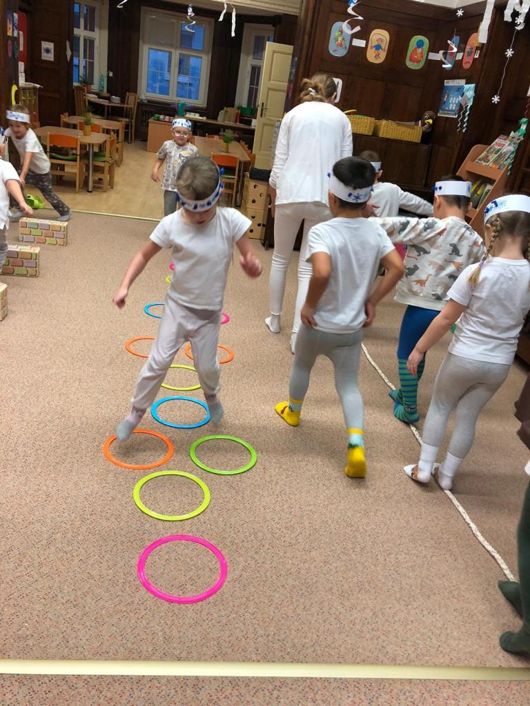 Dnes jsme oslavili příchod paní Zimy v bílém oblečení a všechny děti si vyrobily bílé čelenky z papíru.