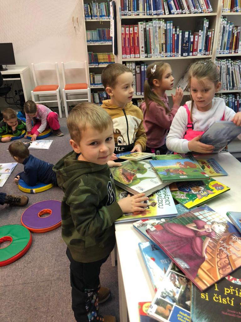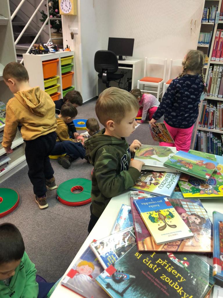 V úterý 9.1. Jsme zašli do knihovny vrátit knihy a vypůjčit si do školky nové.