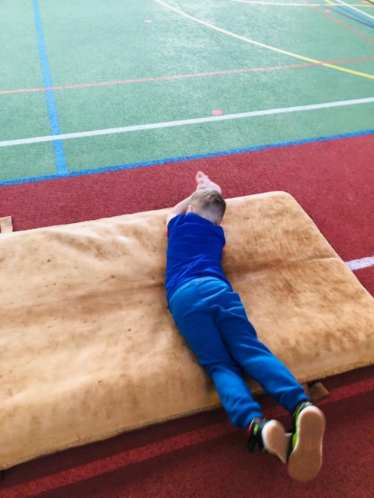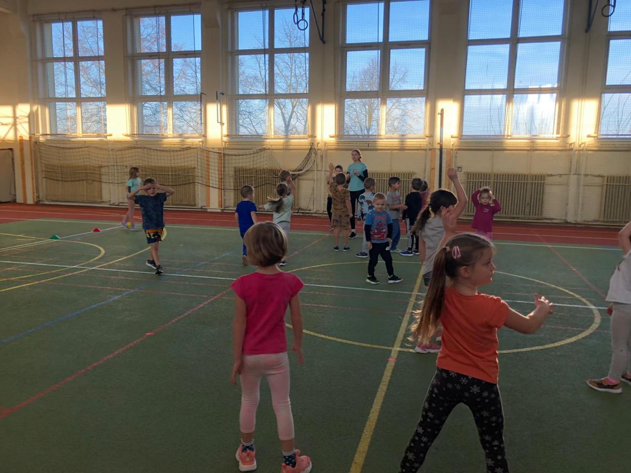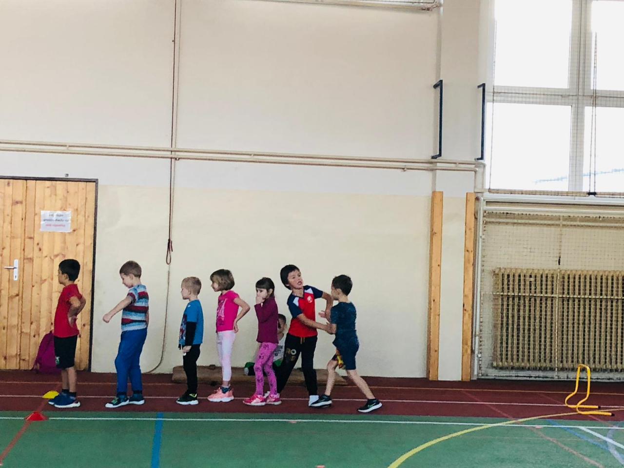 Dnes děti měly možnost protáhnout svá tělíčka v tělocvičně.