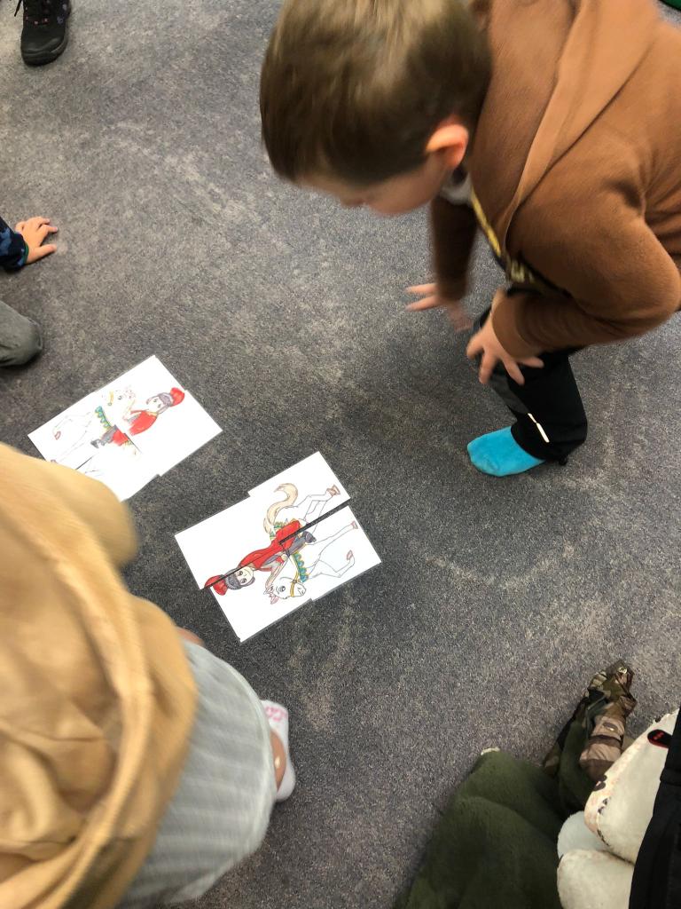 Dnes jsme dětmi navštívili knihovnu s programem o svatém Martinovi.