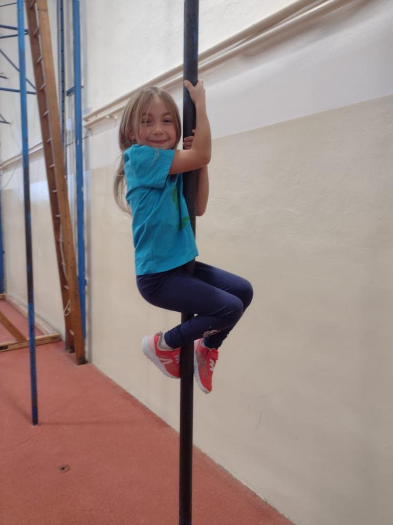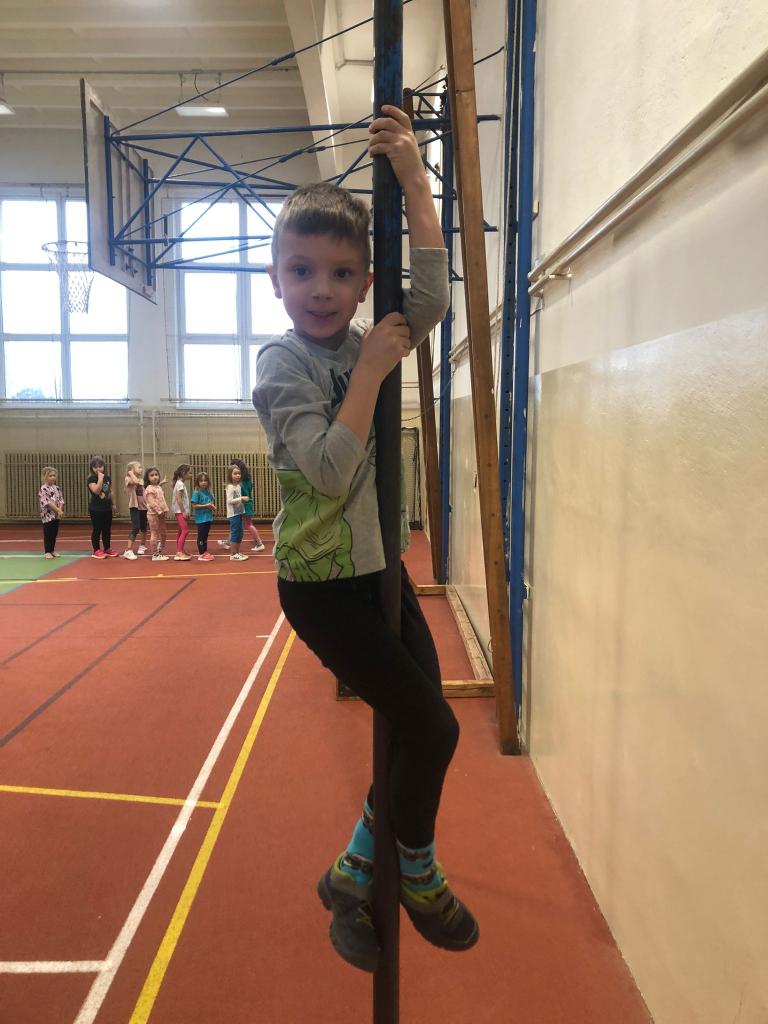 Navštívili jsme tělocvičnu,kde jsme zkoušeli šplhat na laně a na tyči a hráli jsme míčové hry.