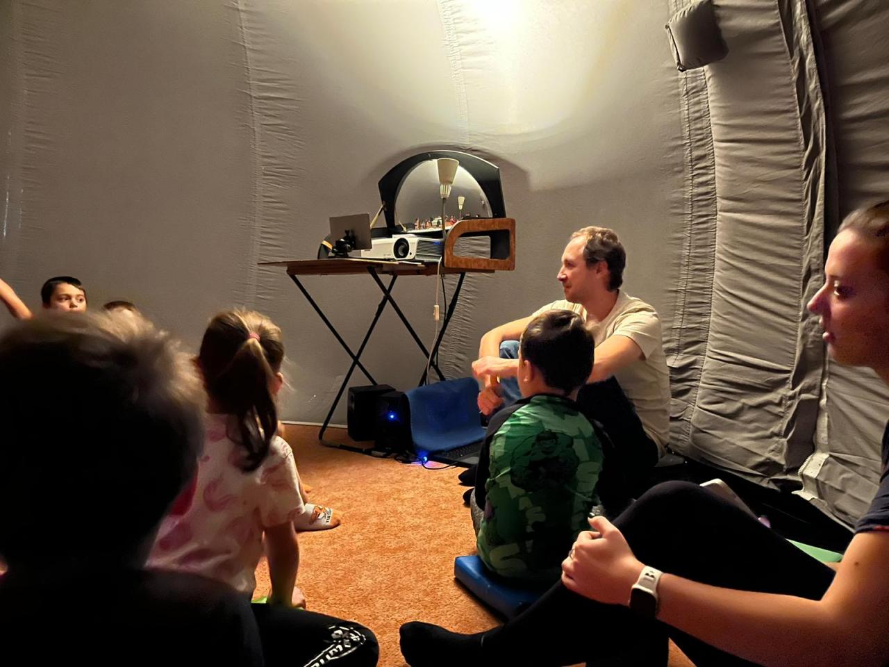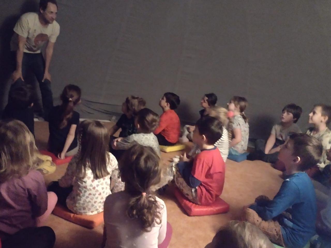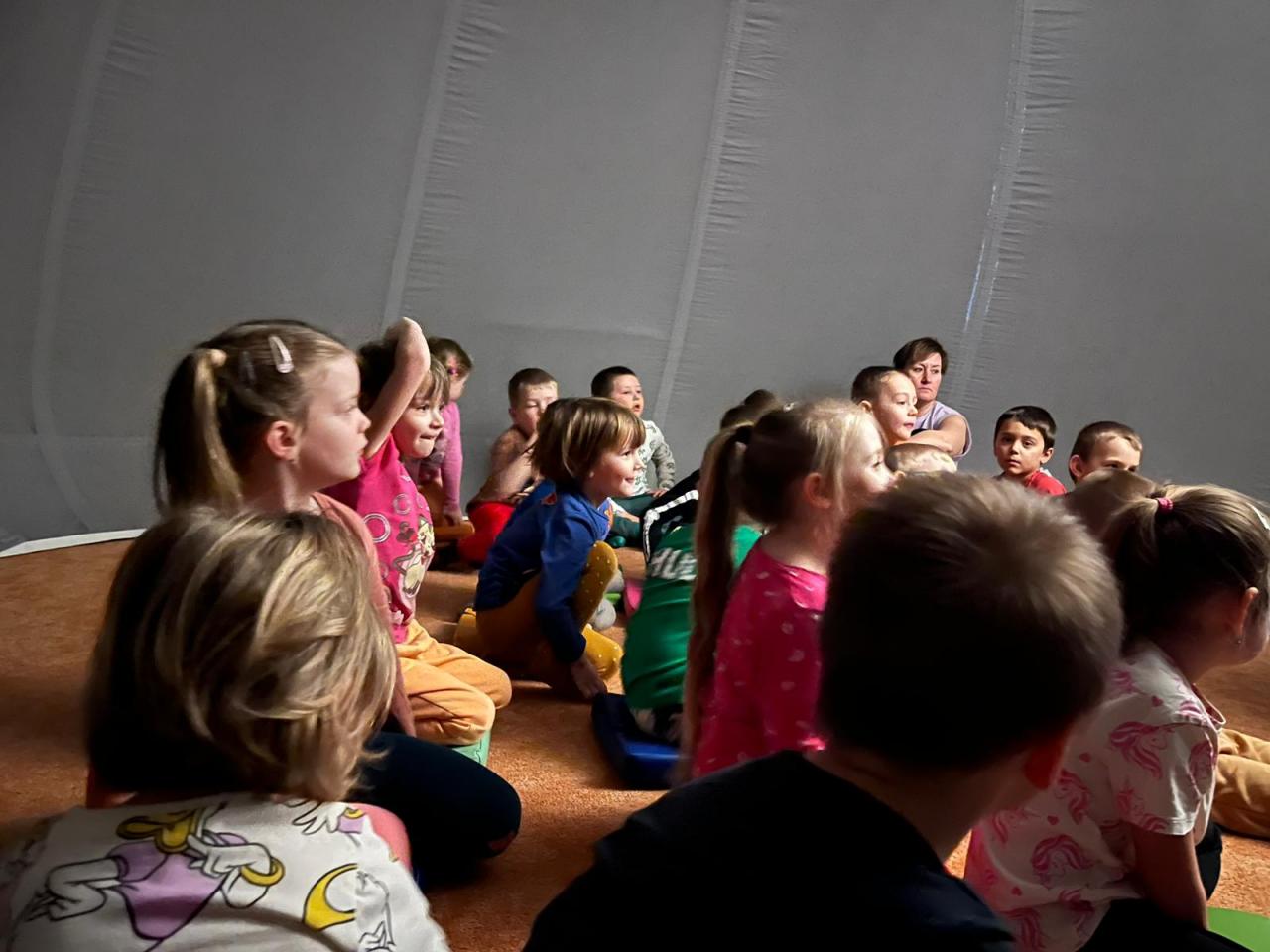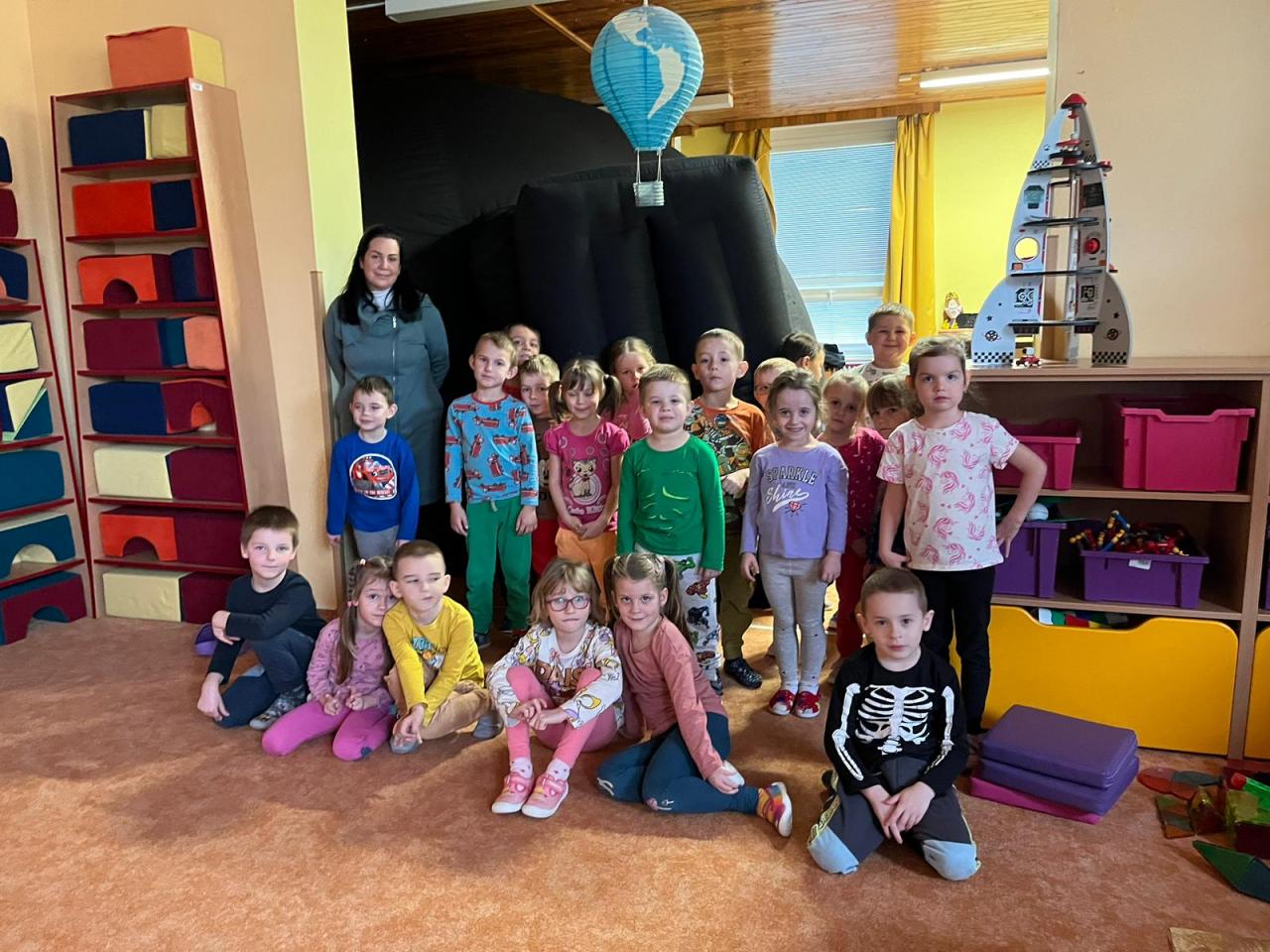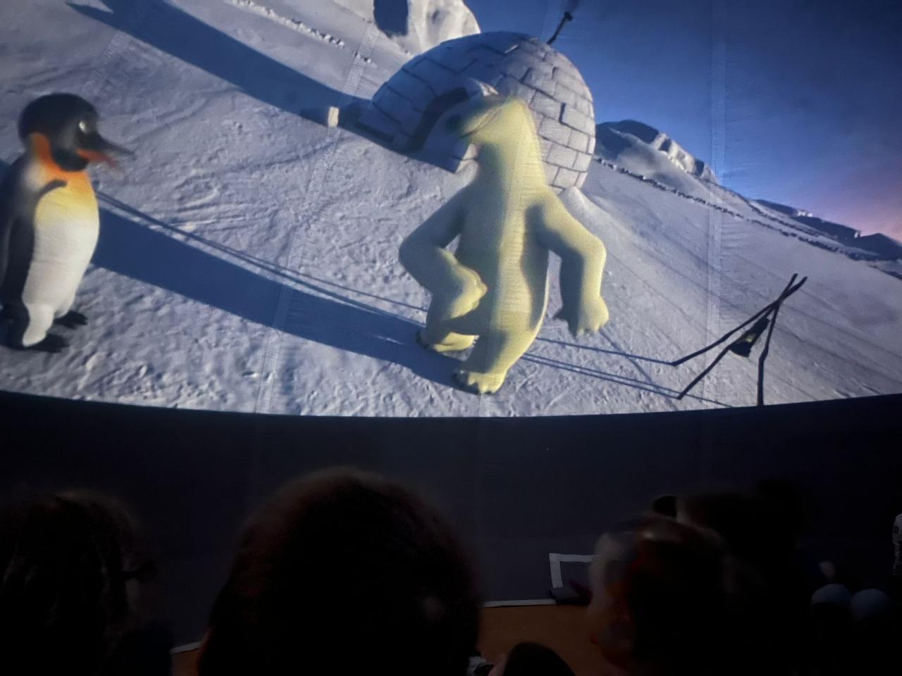Do školky dorazilo nafukovací kino a děti shlédly pohádku Polaris o setkání ledního medvěda a zvídavého tučňáka a o jejich společném dobrodružství.