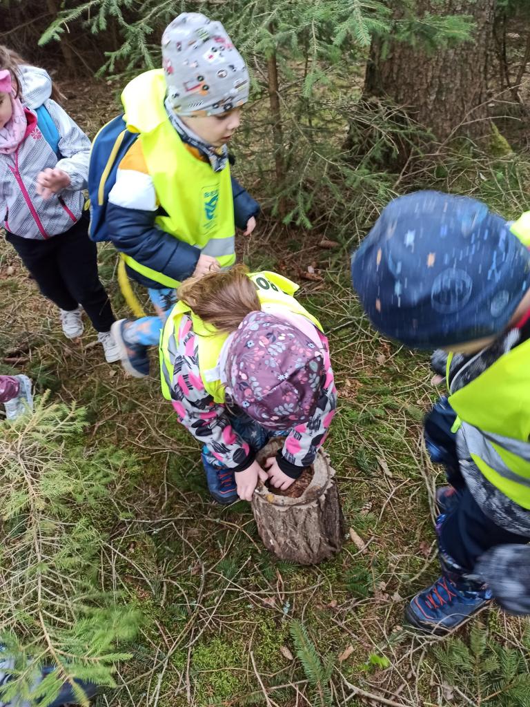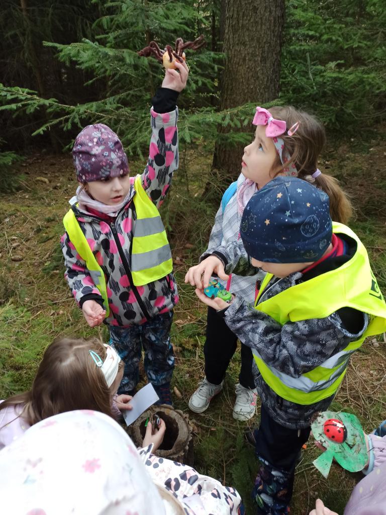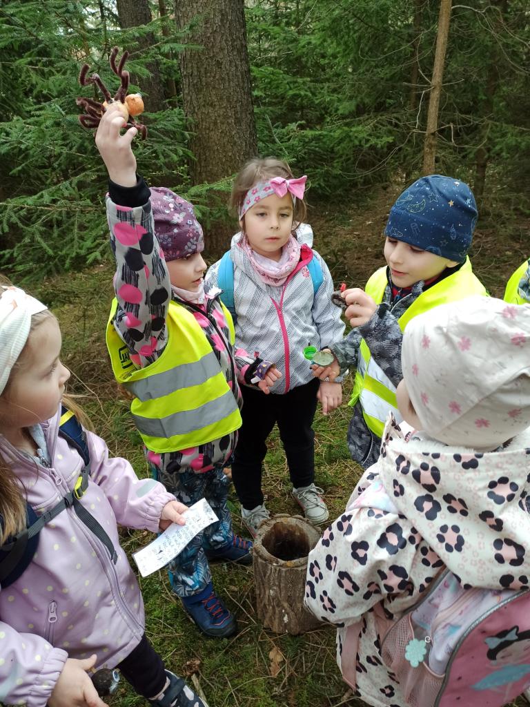 Vyrazili jsme do lesa probudit naše broučky, které jsme na podzim v lese uspali.Cestou jsme plnili různé Raráškovy úkoly.