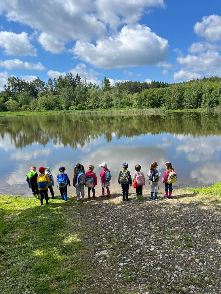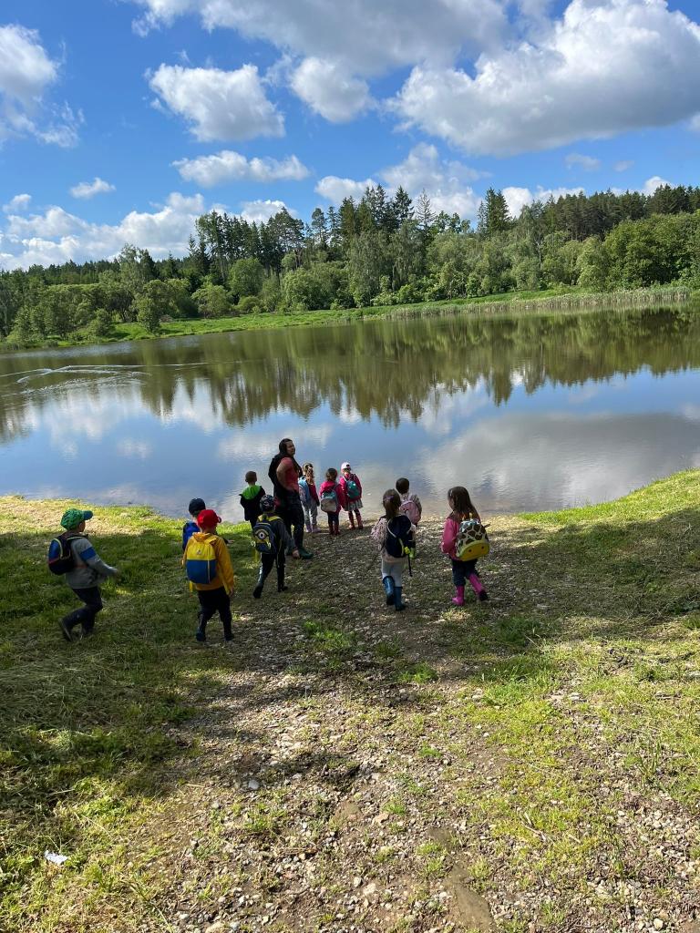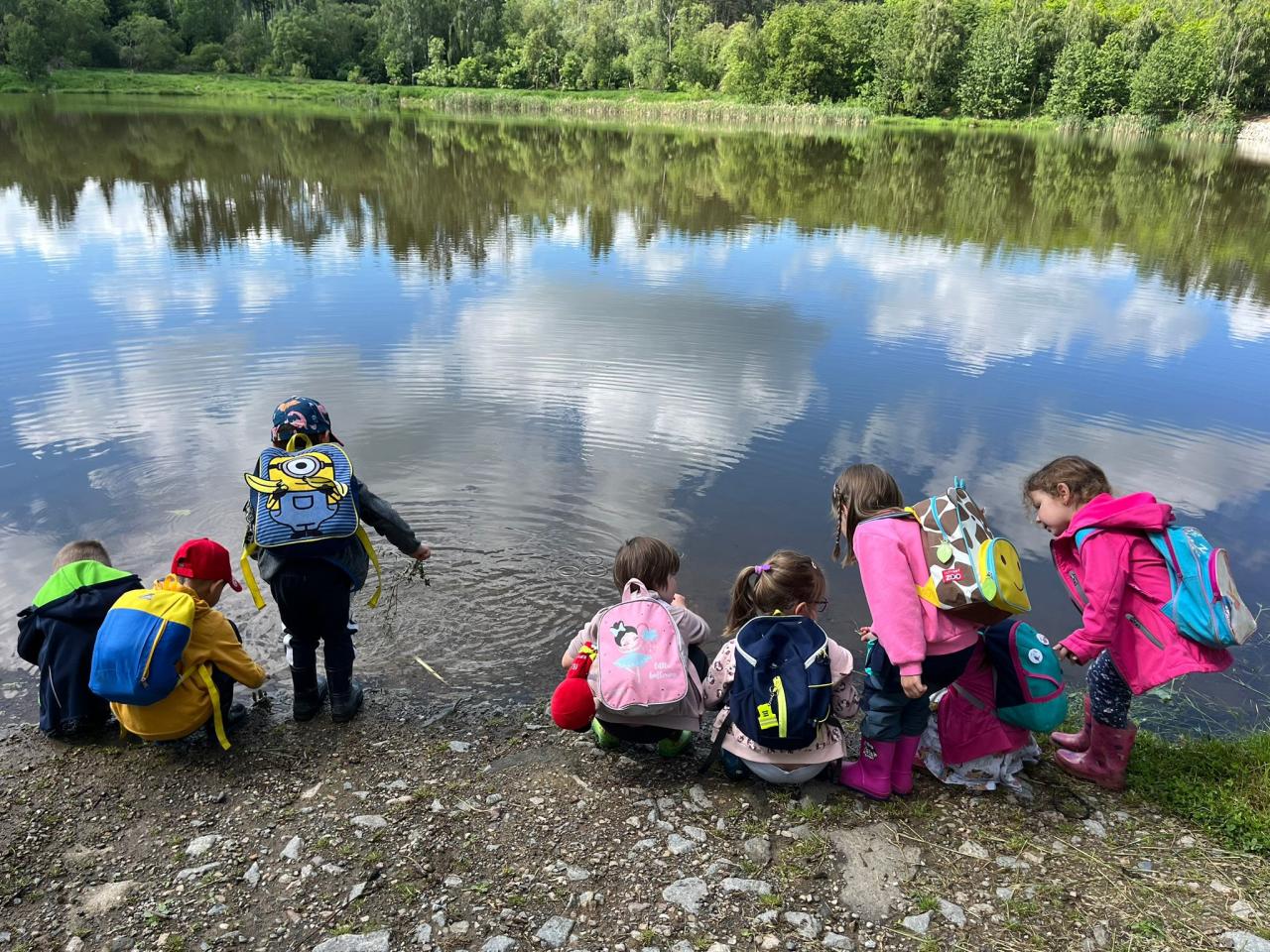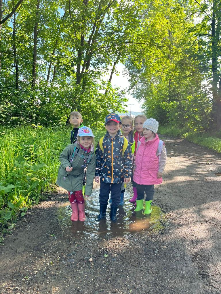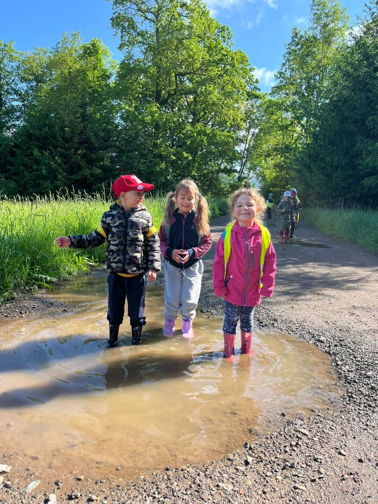 S Raráškem jsme se vydali k přehradě podívat se na labutě a cestou jsme si užívali kalužiny.