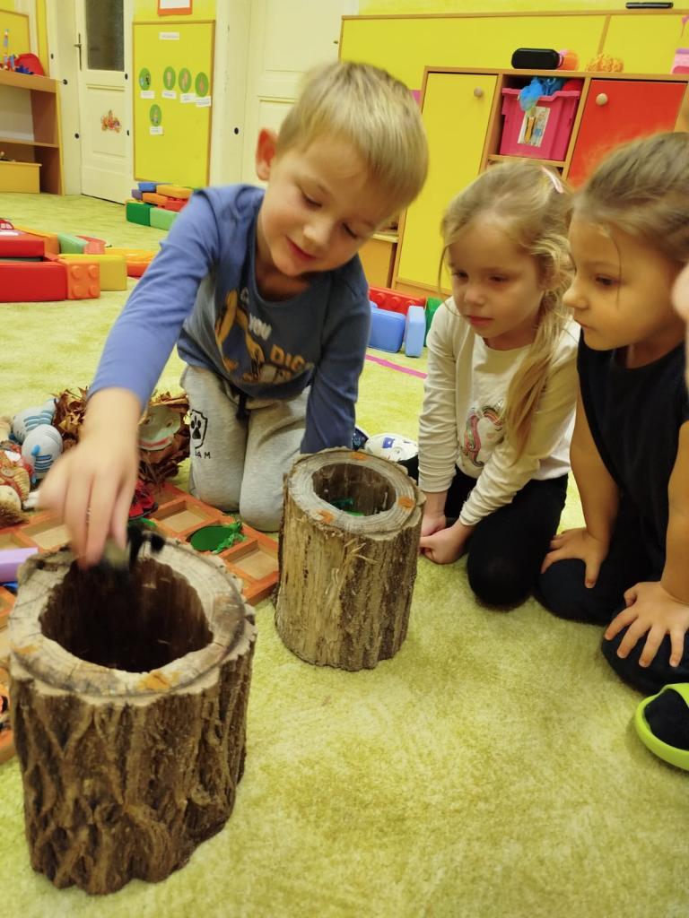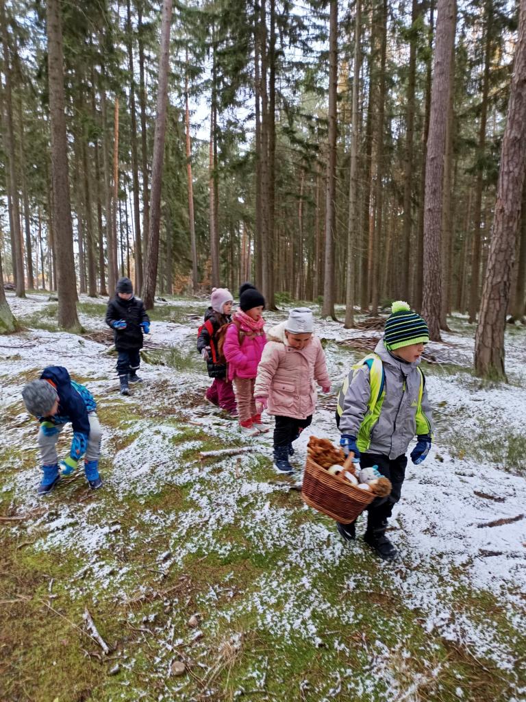 Vyrazili jsme uspat na zimu broučky, které děti spolu se svými rodiči vyráběly.Společně jsme je uložili do domečku z kmene,odnesli do lesa,zazpívali ukolébavku a přečetli jim pohádku na dobrou noc.