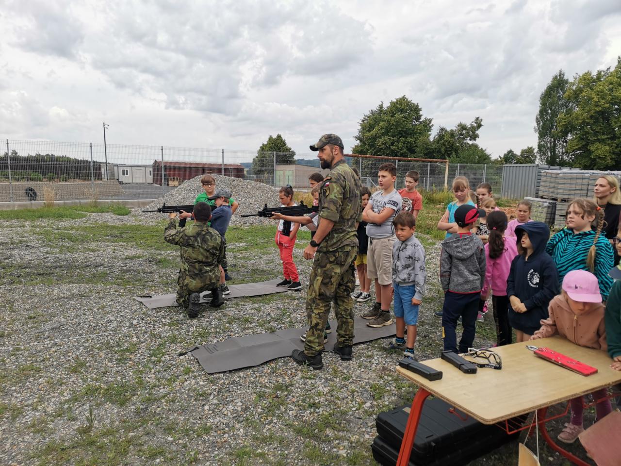 Dne 27. 6. 2023 nás navštívili vojáci z KVV Plzeň, počasí nám přálo, takže si žáci mohli vyzkoušet první pomoc, střelbu ze zbraně, prohlédnout vojenský vůz nebo hledat různé předměty pomocí detektoru kovů.