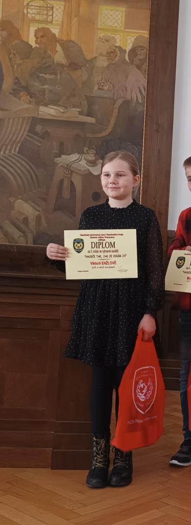Žákyně 4. třídy Viktorie Enžlová získala 3. místo ve výtvarné soutěži Hasiči, jak je vidím já v kategorii Komiks. Ocenění převzala dne 23. 4. v rámci slavnostního vyhlášení výsledků na rokycanské radnici.