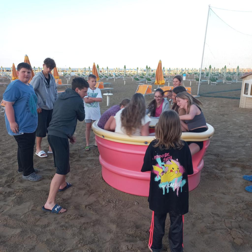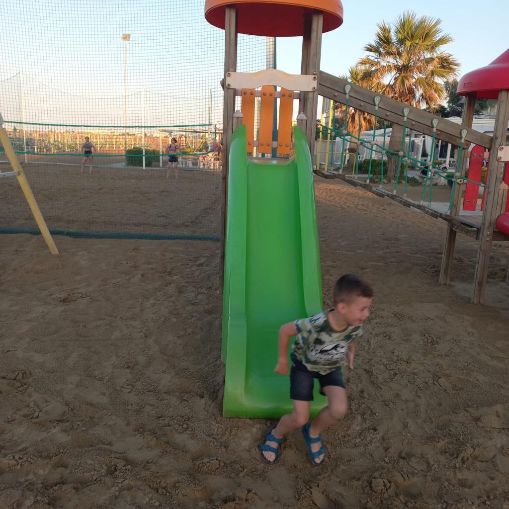 Ozdravný pobyt se pomalu chýlí ke konci...Šestý den naši žáci strávili dopoledne koupáním, po obědě se však strhla bouřka s kroupami. Odpoledne se nebe opět vyjasnilo, šlo se nakupovat a na zmrzlinu. Večer si naši výletníci užili hřiště na pláži.